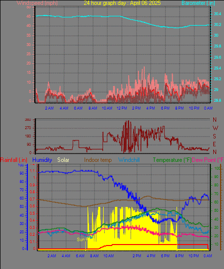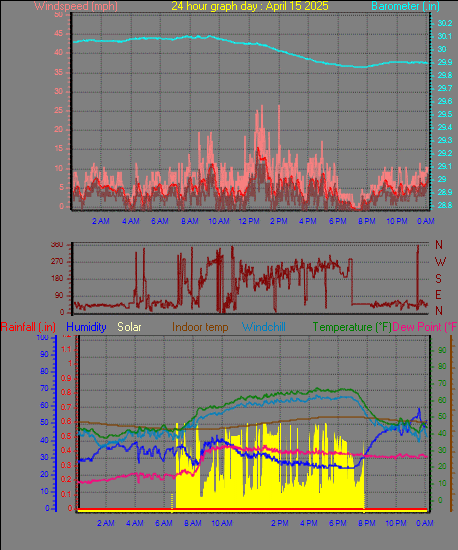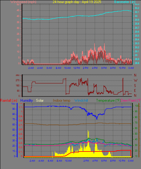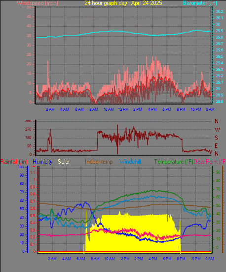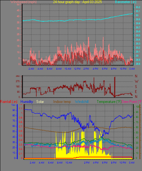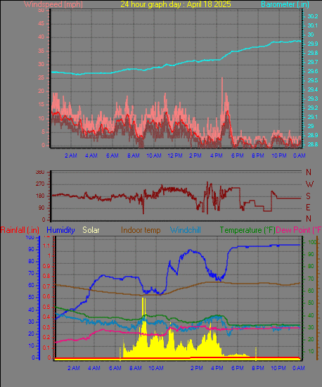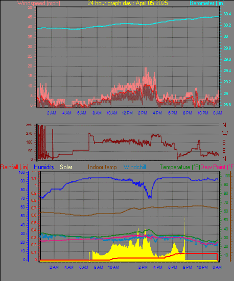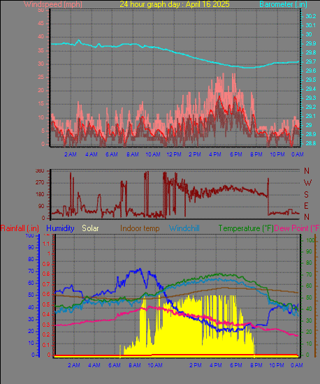 Maximum windspeed = 16.1 mph on day 04 at time 23:28