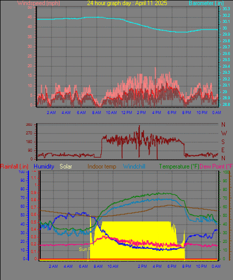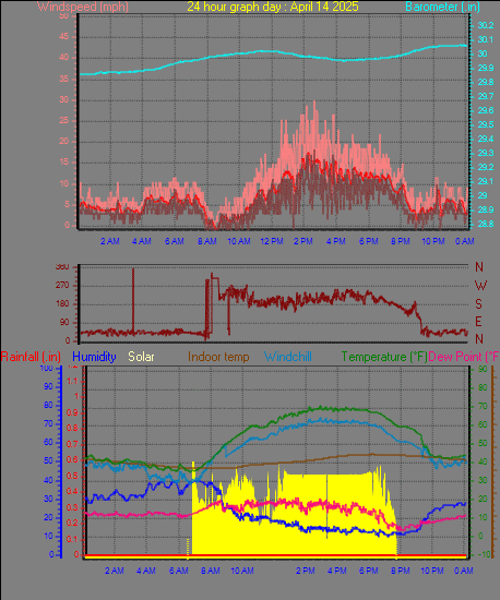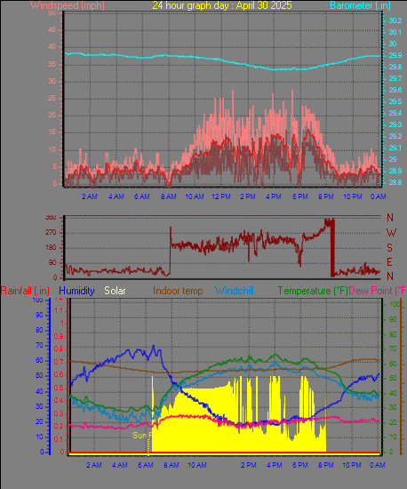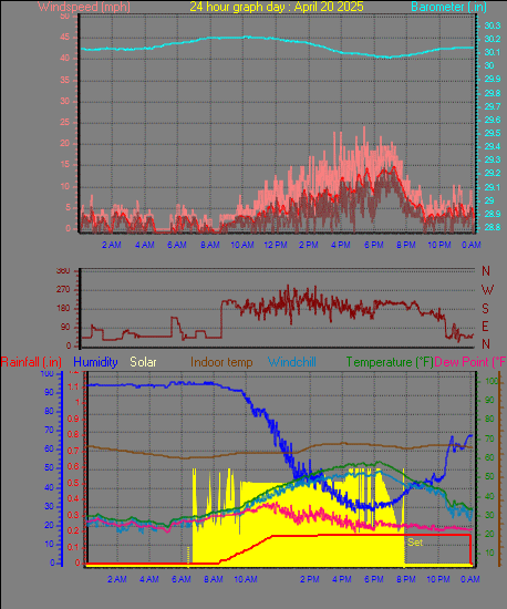 Maximum windspeed = 19.6 mph on day 30 at time 17:26
