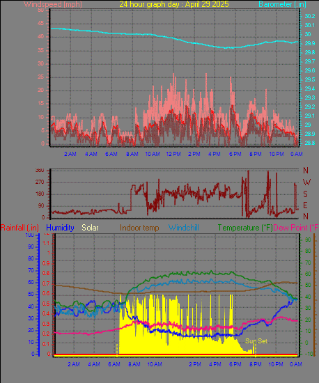 Maximum windspeed = 19.6 mph on day 29 at time 17:34