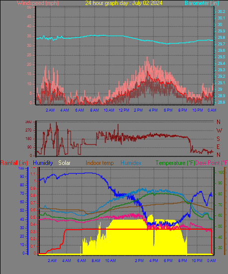 Maximum dewpoint = 62.7°F on day 02 at time 13:11