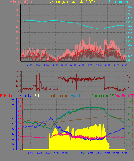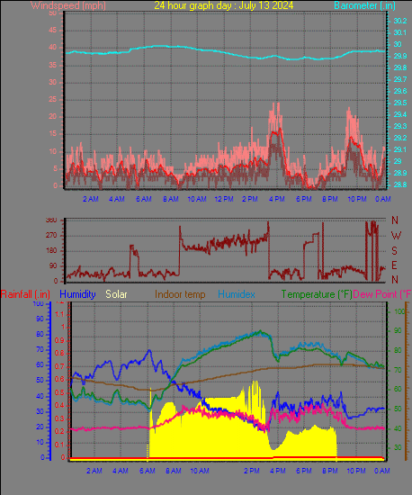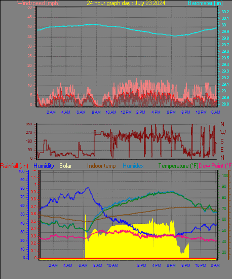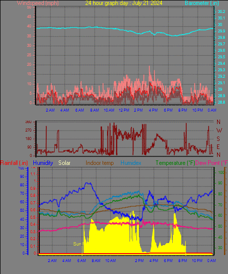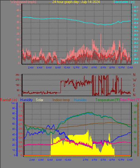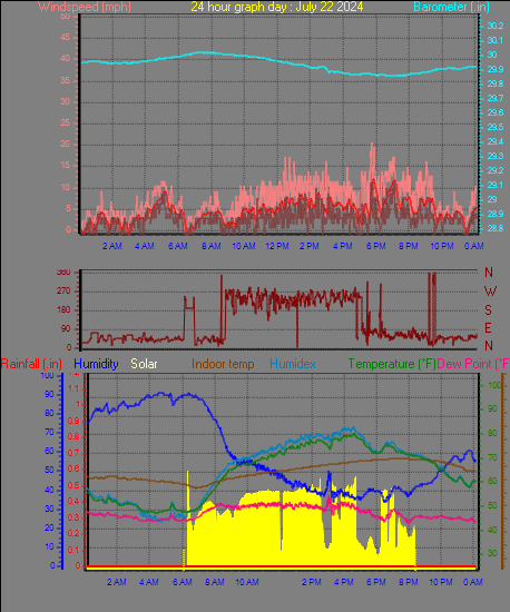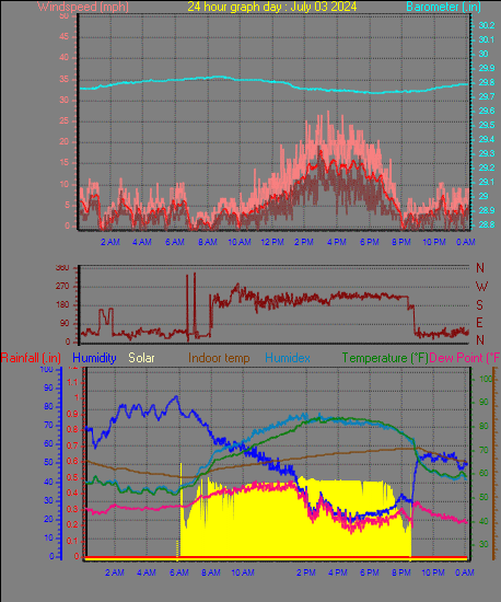 Maximum windspeed = 23.0 mph on day 03 at time 14:54