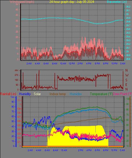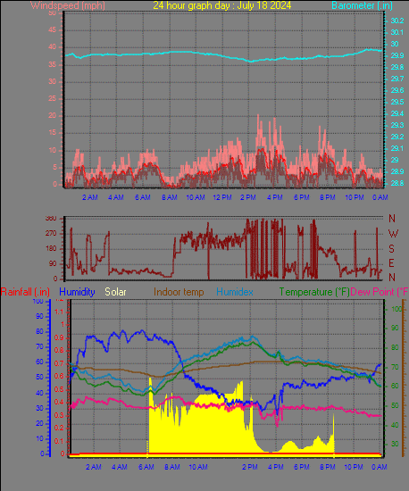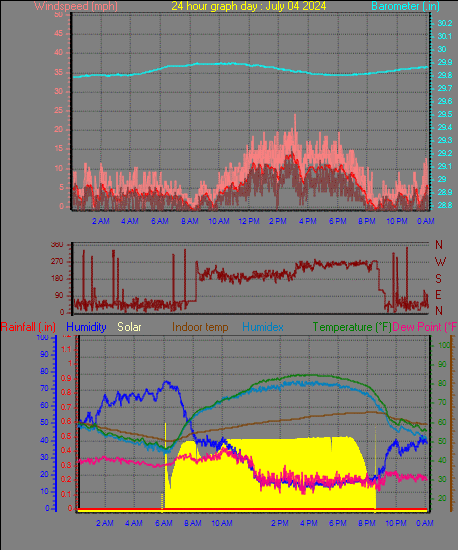 Maximum windspeed = 18.4 mph on day 04 at time 14:58