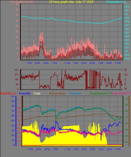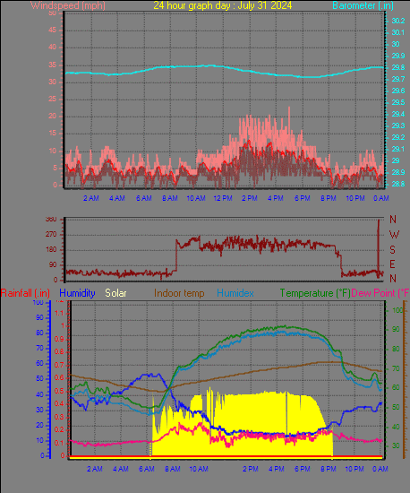 Maximum gust speed = 23.0 mph from 213 °(SSW) on day 31 at time 17:01