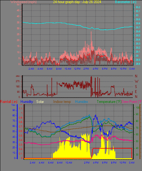 Maximum rain per minute = 0.030 in on day 26 at time 15:14
