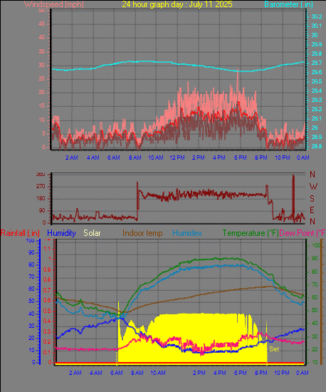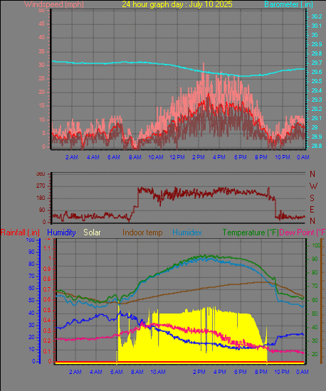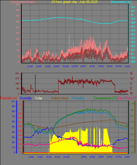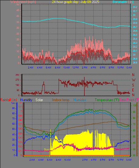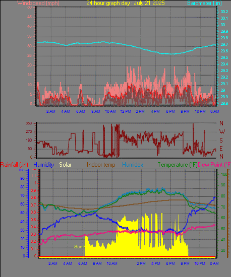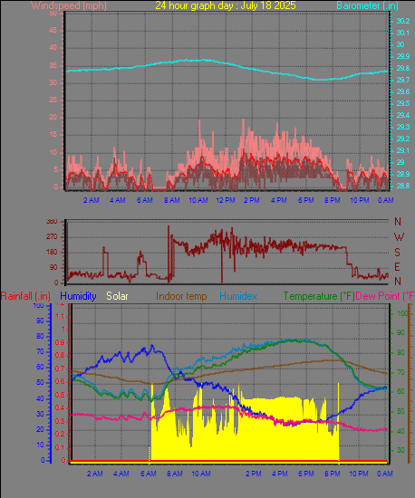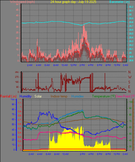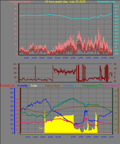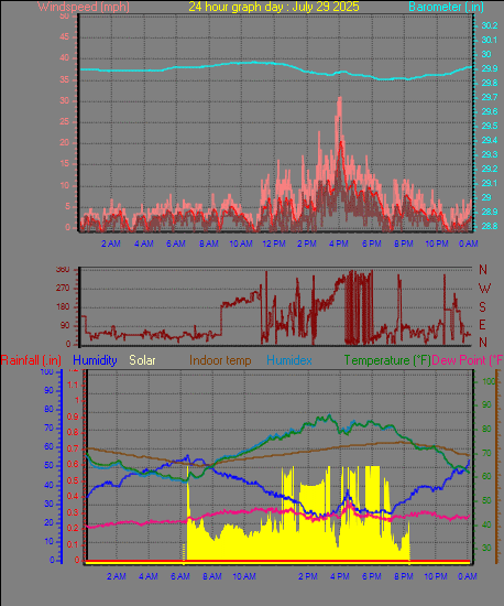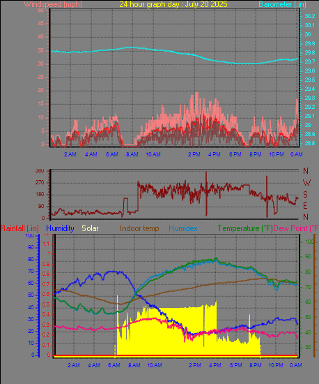 Maximum windspeed = 19.6 mph on day 30 at time 20:37