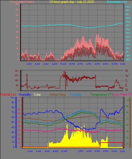 Maximum rain per minute = 0.030 in on day 22 at time 18:40