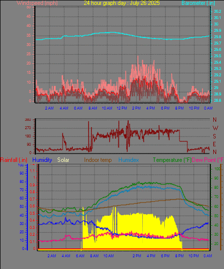 Maximum heat index = 83.2°F on day 29 at time 15:21