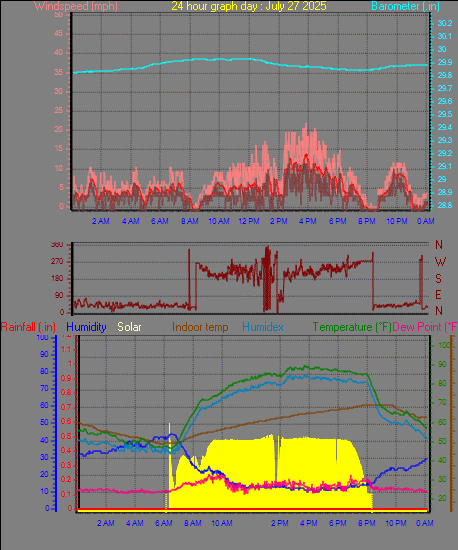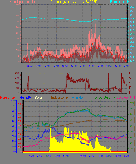 Maximum windspeed = 27.6 mph from 059°(ENE) on day 28 at time 16:52