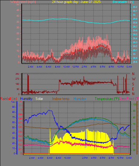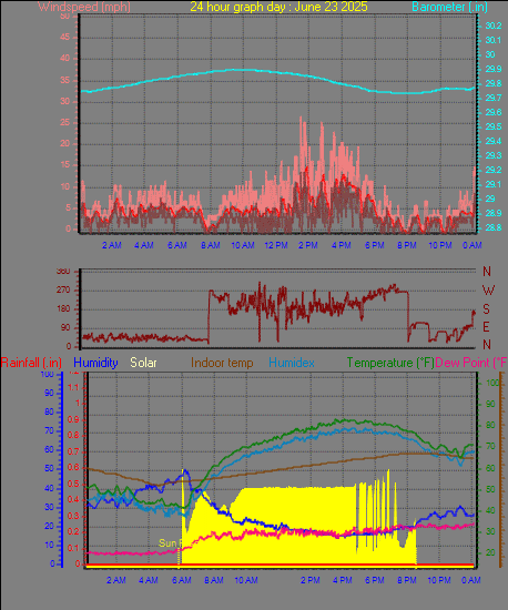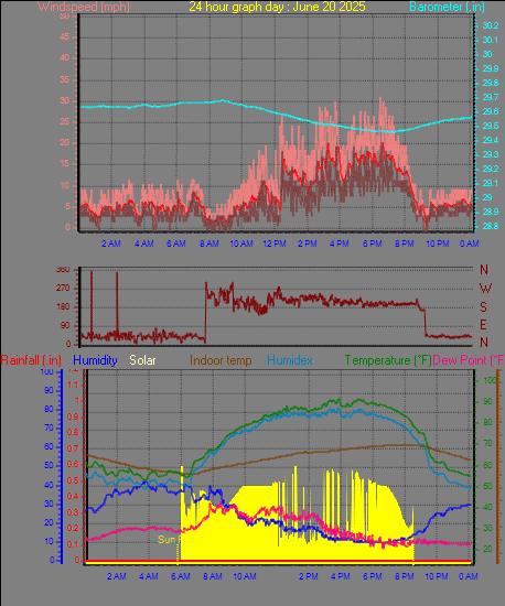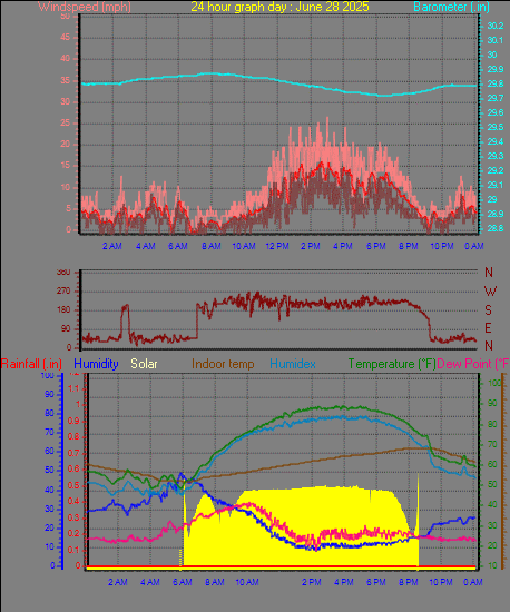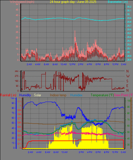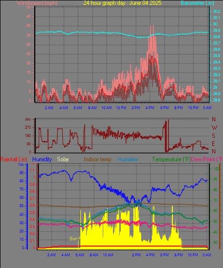 Maximum windspeed = 28.8 mph on day 04 at time 15:51