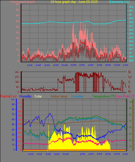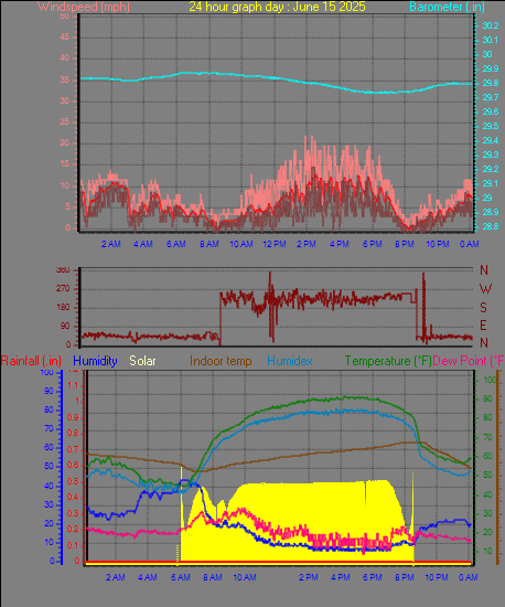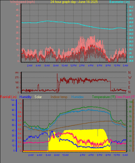 Maximum windspeed = 16.1 mph on day 29 at time 15:43