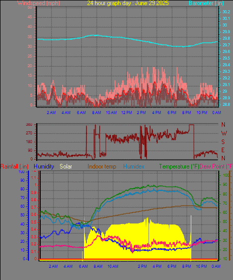 Minimum temperature = 46.1°F on day 29 at time 05:29