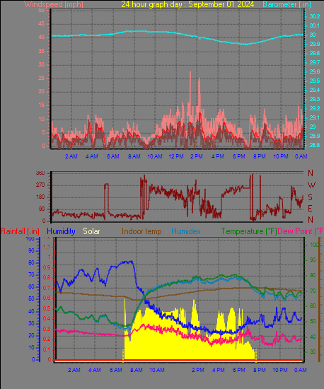Maximum windspeed = 15.0 mph on day 30 at time 15:26
