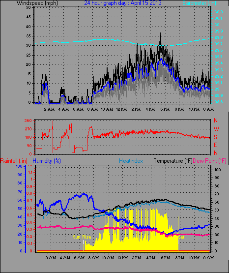 Maximum windspeed = 15.0 mph on day 03 at time 14:53