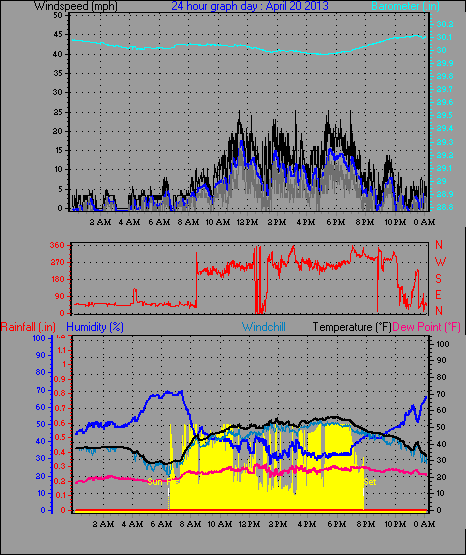 Maximum windspeed = 19.6 mph on day 01 at time 16:08