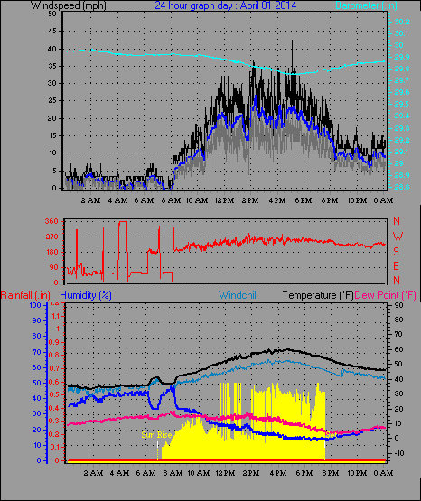 Maximum windspeed = 31.1 mph on day 01 at time 14:15