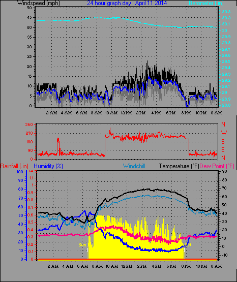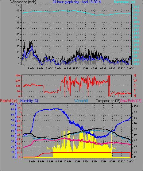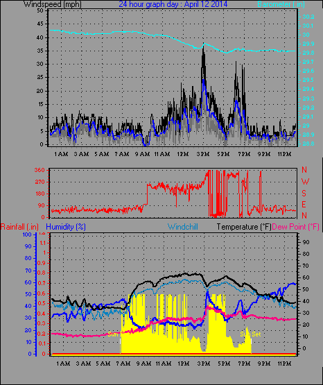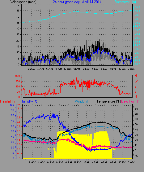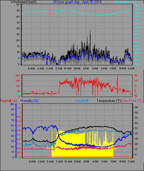 Maximum windspeed = 17.3 mph on day 30 at time 14:16