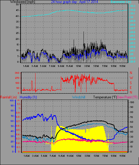 Maximum windspeed = 17.3 mph on day 03 at time 17:42