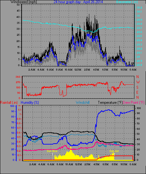 Maximum windspeed = 32.2 mph from 248°(WSW) on day 26 at time 14:25