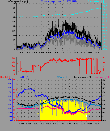 Maximum windspeed = 17.3 mph on day 29 at time 16:03