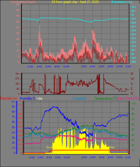 Maximum windspeed = 19.6 mph on day 04 at time 14:51