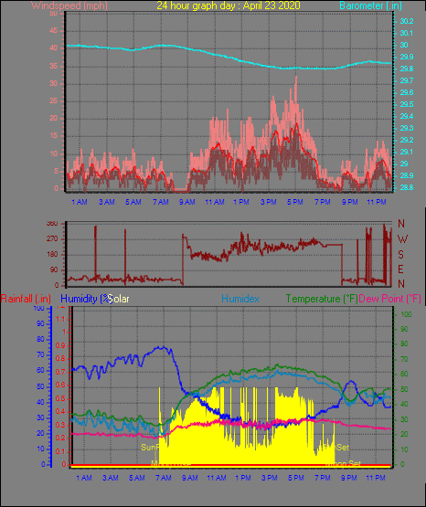 Maximum windspeed = 18.4 mph on day 29 at time 11:57