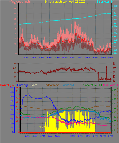 Maximum windspeed = 17.3 mph on day 30 at time 18:19