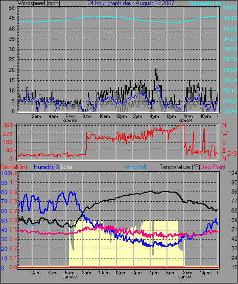 Maximum windspeed 12.0 mph from 272° on day 31 at time 13:25