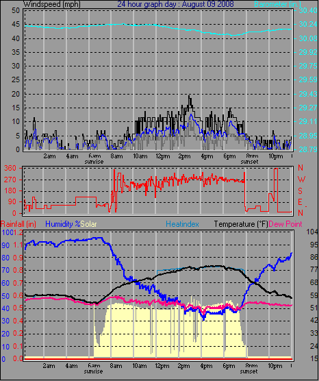 Maximum gust speed = 17 mph from 225 °( SW) on day 30 at time 20:47