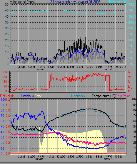 Maximum heat index = 83.4°F on day 01 at time 16:35