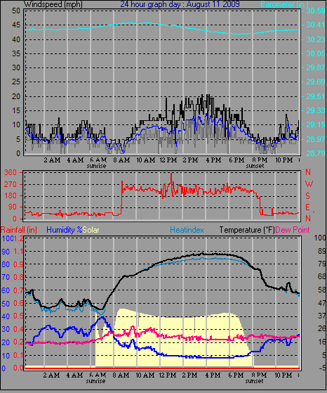 Maximum heat index = 86.4°F on day 05 at time 16:07