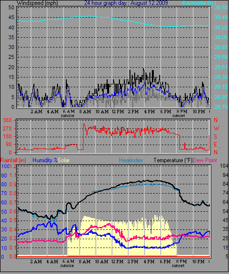 Maximum heat index = 79.1°F on day 30 at time 08:43