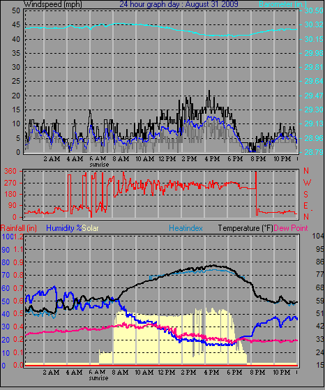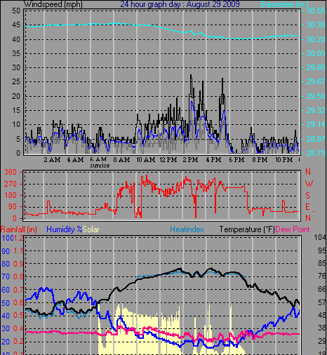 Maximum windspeed = 23.0 mph on day 29 at time 14:43
