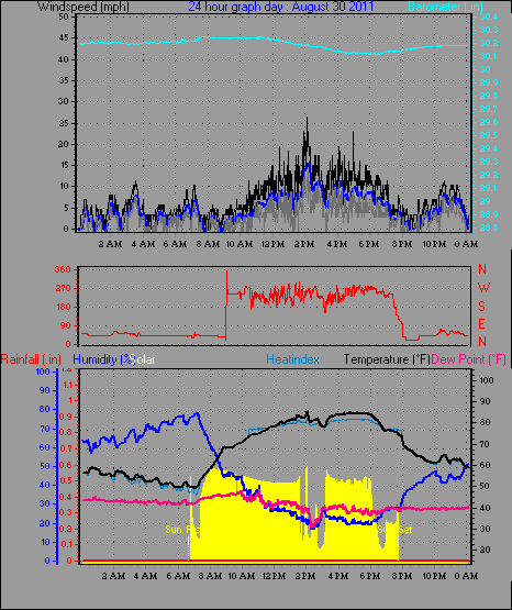 Maximum windspeed = 18.4 mph on day 30 at time 14:12
