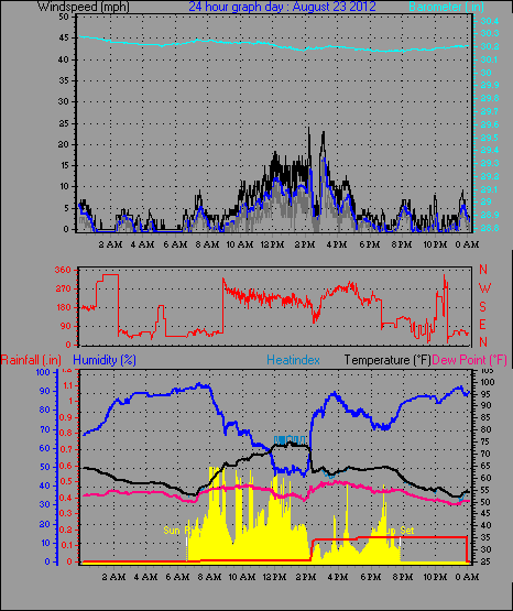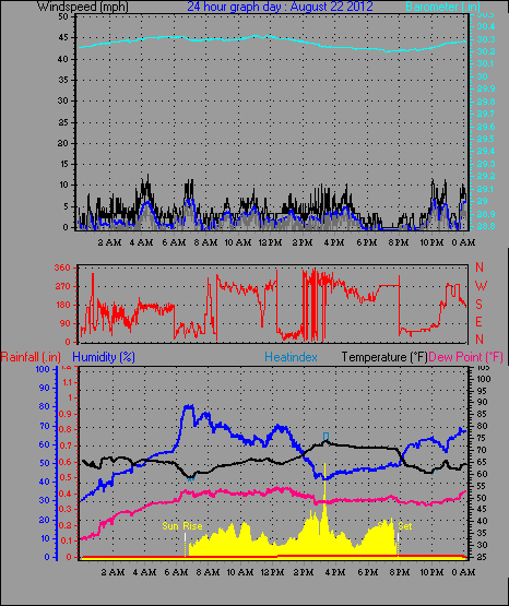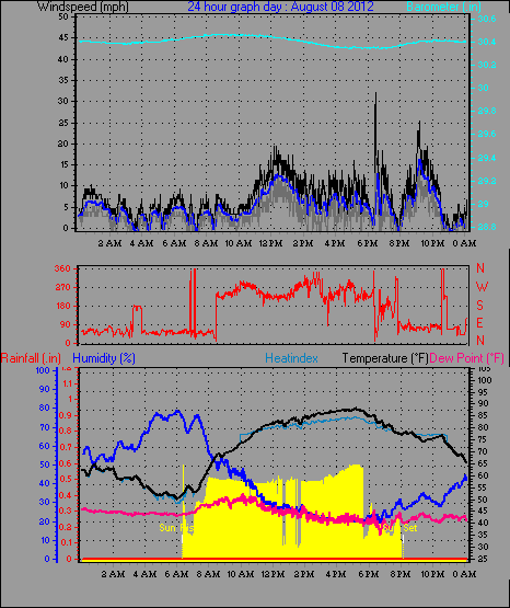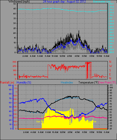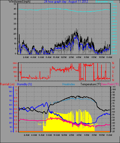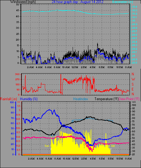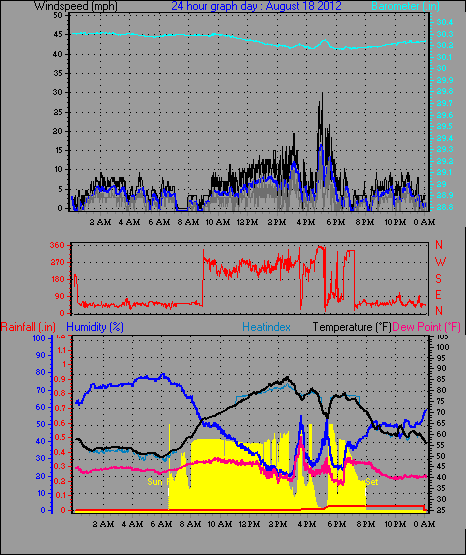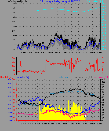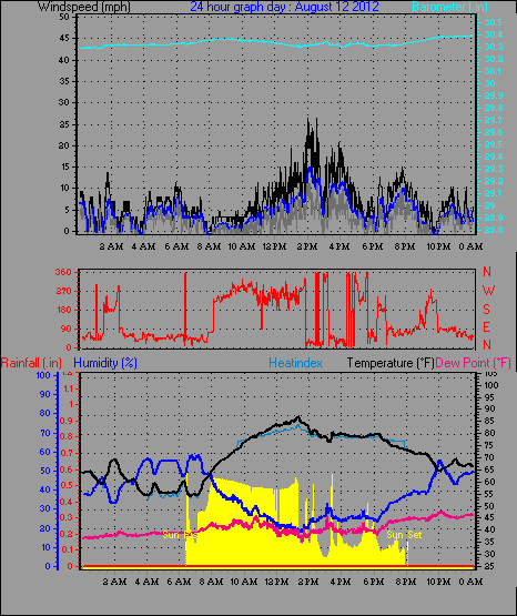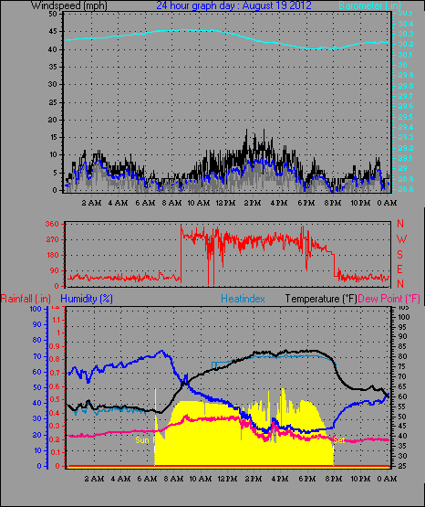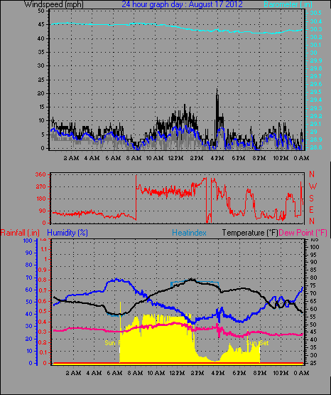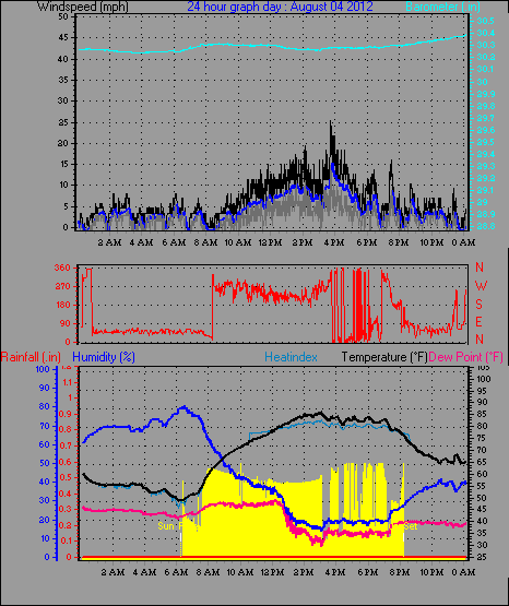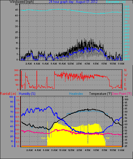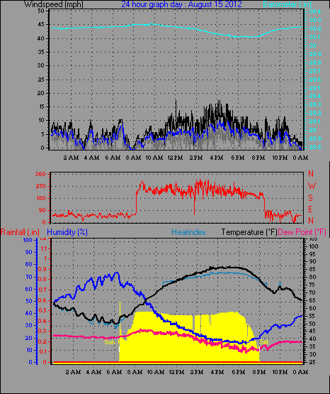 Maximum windspeed = 15.0 mph on day 01 at time 17:05