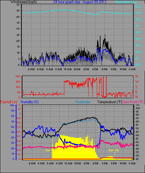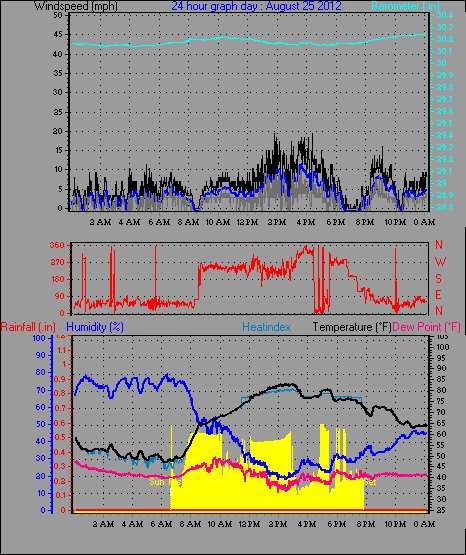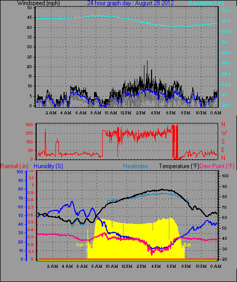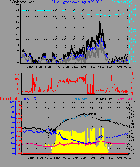 Maximum windspeed = 25.3 mph from 068°(ENE) on day 29 at time 17:51