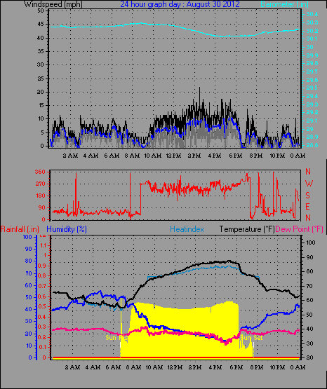 Maximum windspeed = 13.8 mph on day 30 at time 17:29