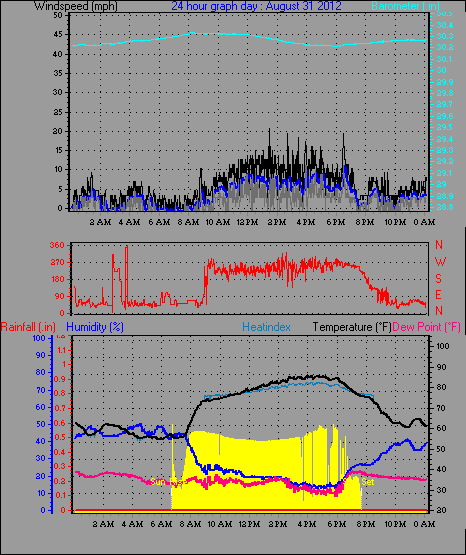 Minimum temperature = 54.7°F on day 31 at time 06:04
