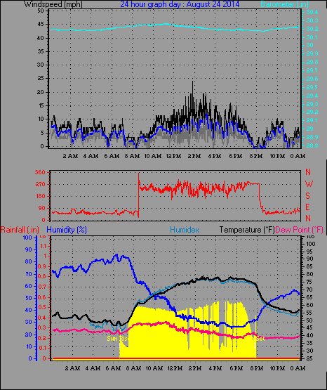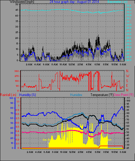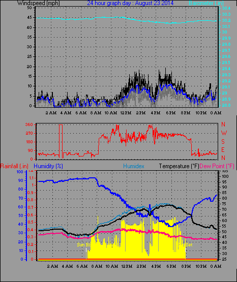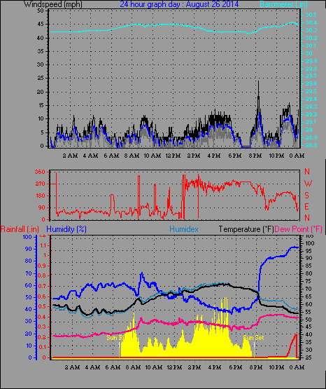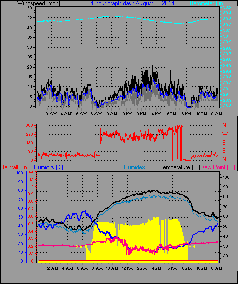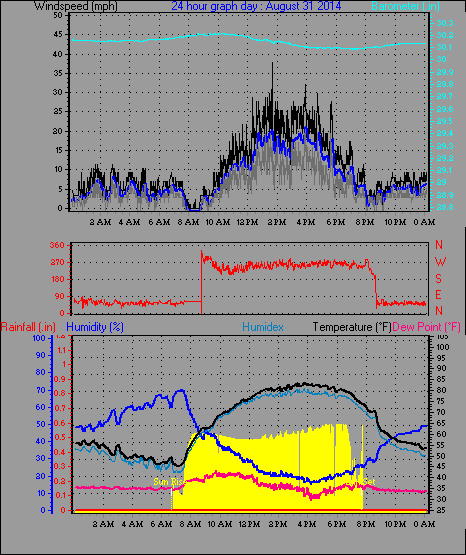 Maximum windspeed = 26.5 mph on day 31 at time 16:44