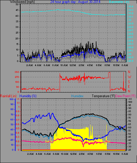Maximum windspeed = 13.8 mph on day 30 at time 17:21