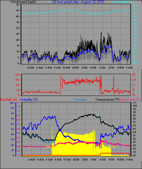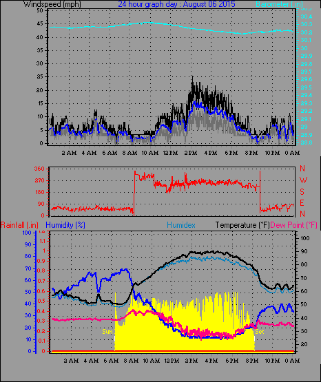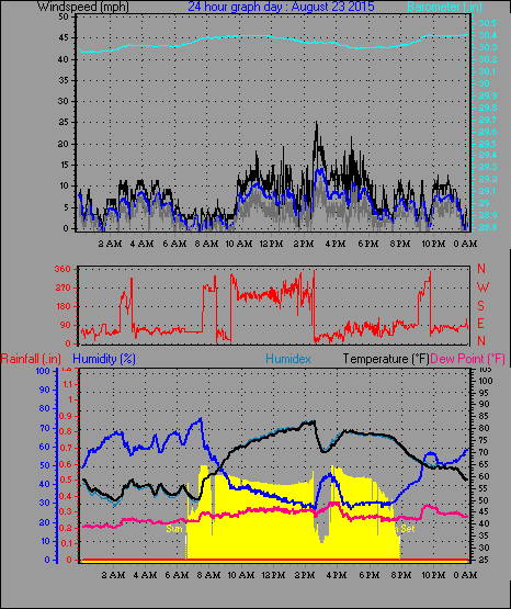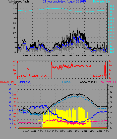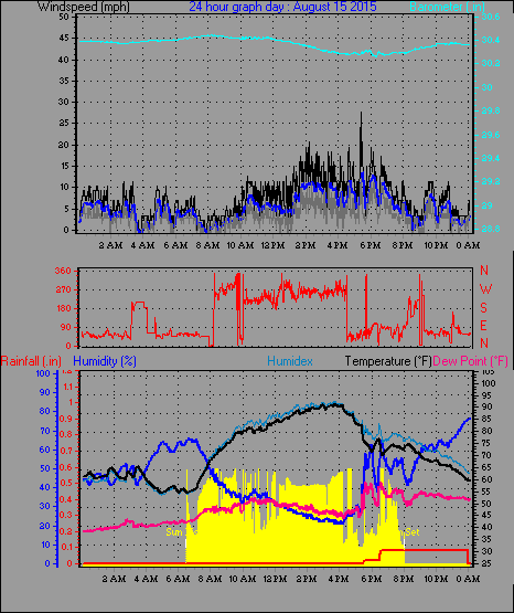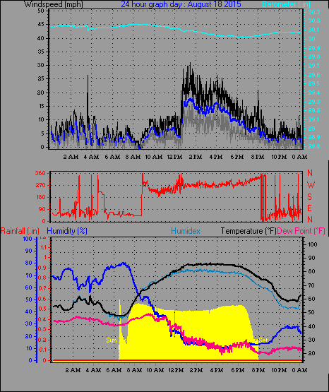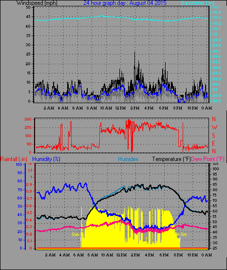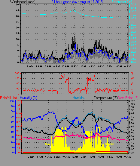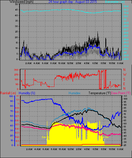 Maximum windspeed = 17.3 mph on day 03 at time 18:36
