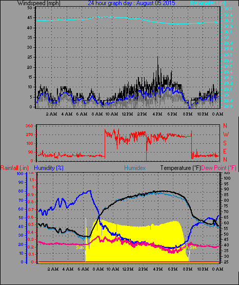 Maximum heat index = 78.0°F on day 01 at time 11:26