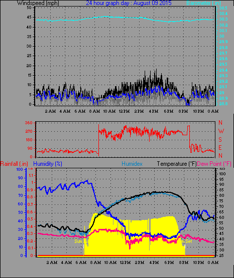 Maximum heat index = 81.3°F on day 03 at time 16:13