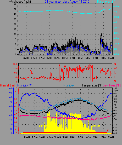 Maximum windspeed = 10.4 mph on day 01 at time 14:05