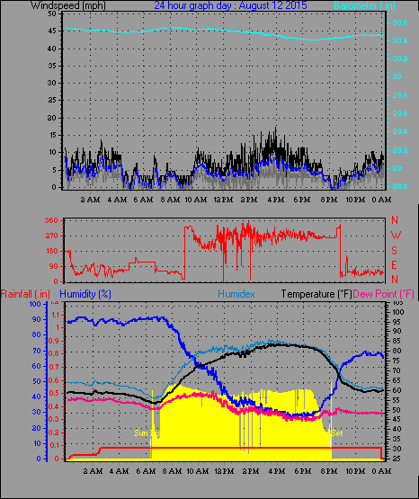 Maximum windspeed = 11.5 mph on day 30 at time 18:21