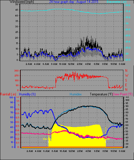 Maximum heat index = 81.2°F on day 02 at time 15:15