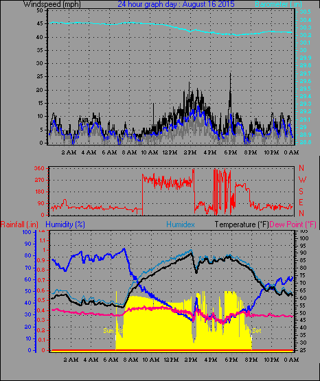 Maximum windspeed = 16.1 mph on day 31 at time 17:12