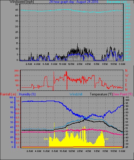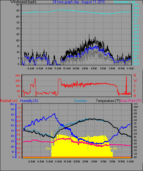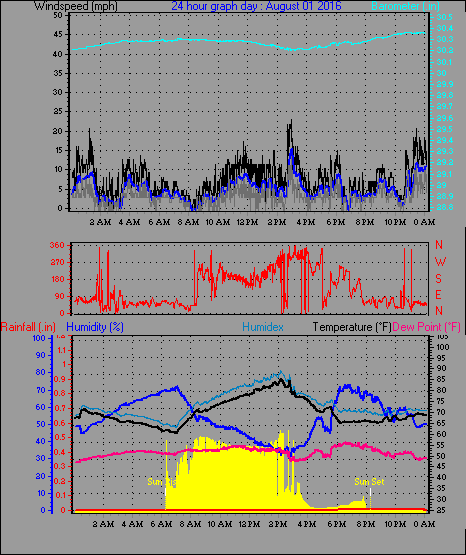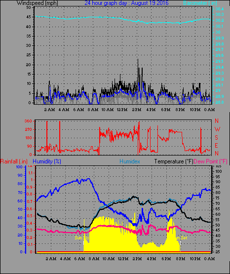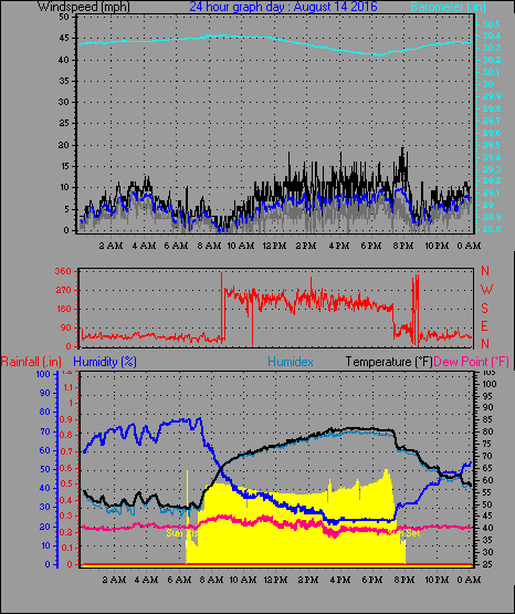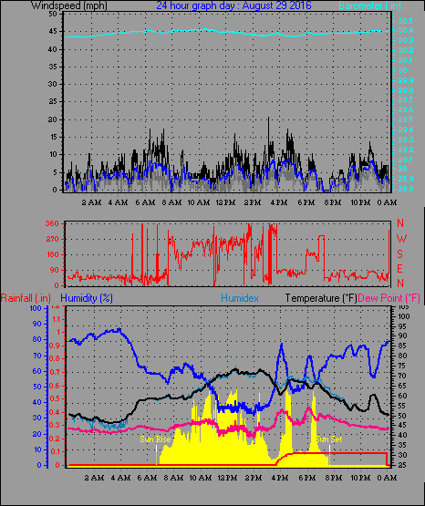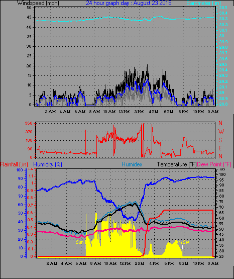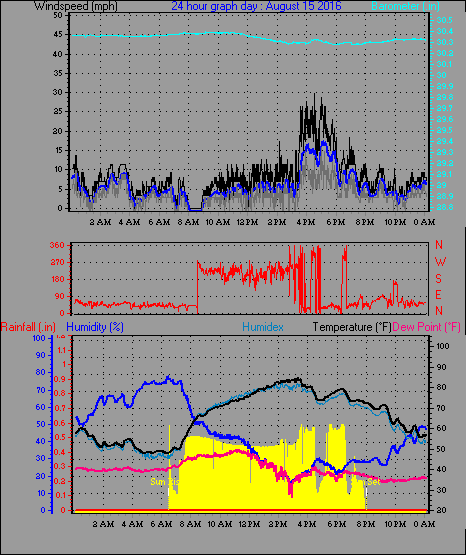 Maximum windspeed = 15.0 mph on day 01 at time 23:28