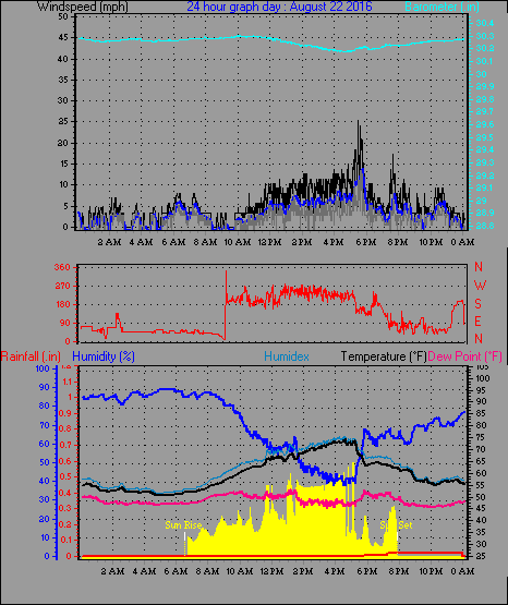Maximum rain per minute = 0.040 in on day 23 at time 14:51