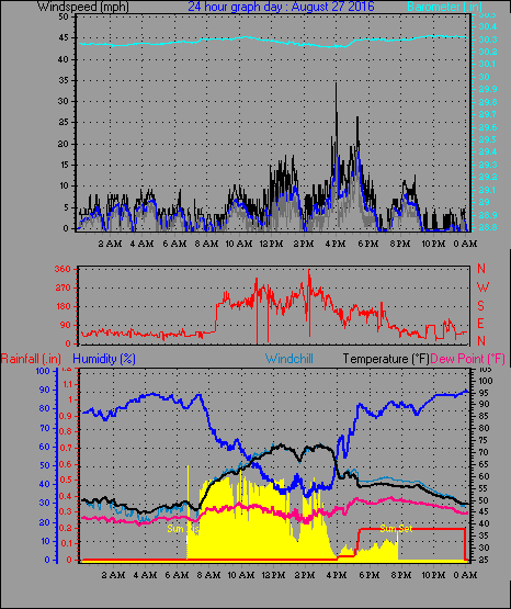 Maximum windspeed = 27.6 mph from 158°(SSE) on day 27 at time 16:00