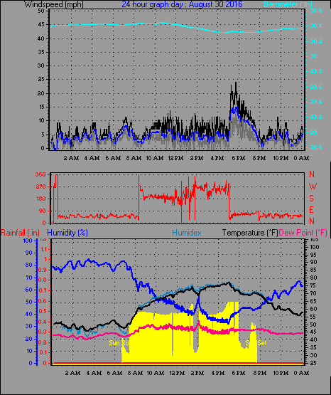 Maximum pressure = 30.369 in. on day 01 at time 22:54